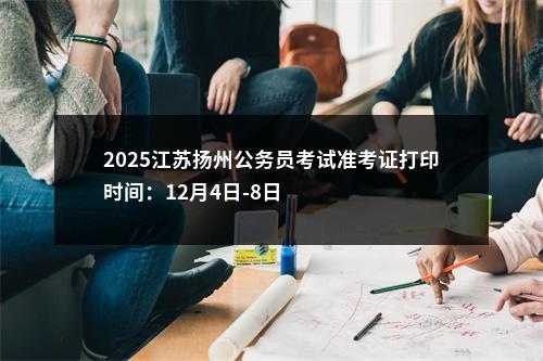 2025江苏公务员考试公告已经发布,准考证打印时间为:12月4日-8日,笔试时间为:12月8日,江苏省公务员考试频道为大家整理了:2025江苏扬州公务员考试准考证打印时间:12月4日-8日。更多江苏公务员考试信息请关注:江苏公务员考试频道。