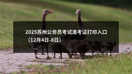 2025江苏公务员考试公告已经发布,准考证打印时间为:12月4日-8日,笔试时间为:12月8日,江苏省公务员考试频道为大家整理了:2025苏州公务员考试准考证打印入口(12月4日-8日)。更多江苏公务员考试信息请关注:江苏公务员考试频道。