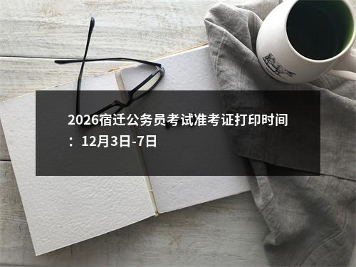 2026江苏公务员考试公告已经发布,准考证打印时间为:12月3日-7日,笔试时间为:12月7日,江苏省公务员考试频道为大家整理了:2026宿迁公务员考试准考证打印时间:12月3日-7日。更多江苏公务员考试信息请关注:江苏公务员考试频道。