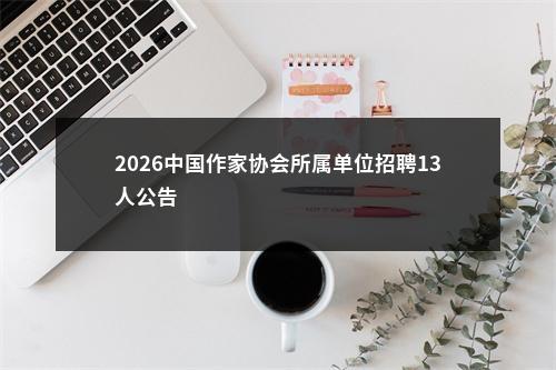 中公教育APP丨微信公众号:淮安中公教育丨点击人工咨询 中国作家协会是中国共产党领导的、中国各民族作家自愿结合的专业性人民团体,是党和政府联系广大作家、文学工作者的桥梁和纽带,是繁荣文学事业、建设社会主义文化强国的重要社会力量。关于中国作家协会及所属单位的有关情况,可访问中国作家网(http://www.chinawriter.com.cn)进行查询。为加强中国作家协会所属单位人员队伍建设,根据《事业单位人事管理条例》和事业单位公开招聘有关政策规定,中国作家协会所属单位2026年度计划公开招聘工作人员13名。现将有关具体事项公告如下。