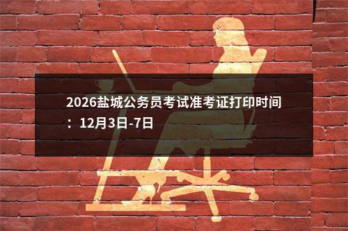 2026江苏公务员考试公告已经发布,准考证打印时间为:12月3日-7日,笔试时间为:12月7日,江苏省公务员考试频道为大家整理了:2026盐城公务员考试准考证打印时间:12月3日-7日。更多江苏公务员考试信息请关注:江苏公务员考试频道。