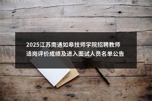 【2025江苏南通如皋技师学院招聘教师适岗评价成绩及进入面试人员名单公告 进入阅读模式】相关岗位: