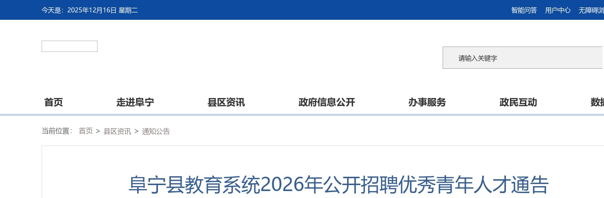 原标题:阜宁县教育系统2026年公开招聘优秀青年人才通告