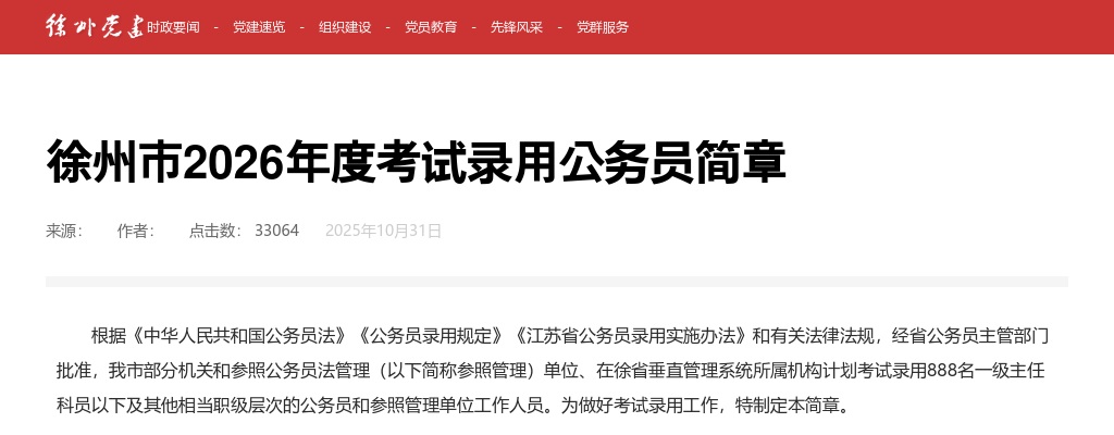 【徐州市2026年度考试录用公务员简章 进入阅读模式】相关岗位: