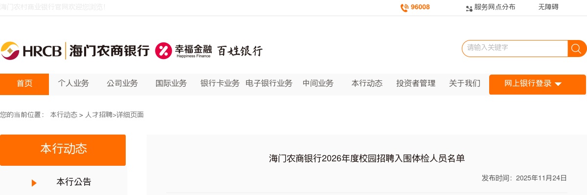 【2026江苏南通市海门农商银行校园招聘入围体检人员名单 进入阅读模式】相关岗位: