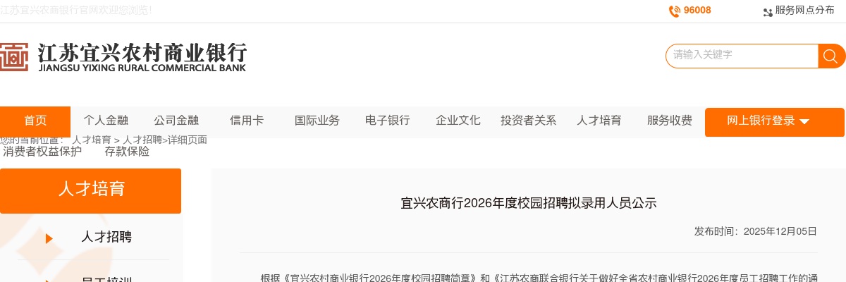 原标题:宜兴农商行2026年度校园招聘拟录用人员公示