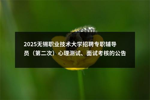 原标题:关于无锡职业技术大学2025年公开招聘专职辅导员(第二次)心理测试、面试考核的公告