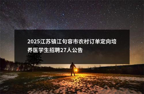 2025年句容市农村订单定向培养医学生定向招聘事业编制岗位为27名,具体招聘岗位、人数等详见《2025年句容市农村订单定向培养医学生招聘岗位表》(附件1)。